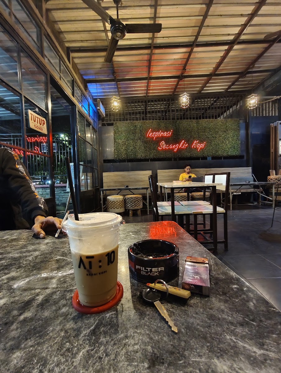 For those looking to work or hang out, the indoor space at At : 10 Coffee is generously equipped with electric plugs at every table, a detail noted by Moh. Risqan K.. The good lighting creates a perfect atmosphere for reading, studying, or indulging in deep conversations over coffee. And speaking of coffee, the quality is commendable, with the baristas serving up well-crafted brews that are sure to satisfy even the more discerning coffee drinkers.